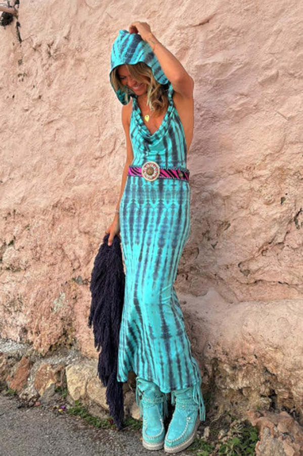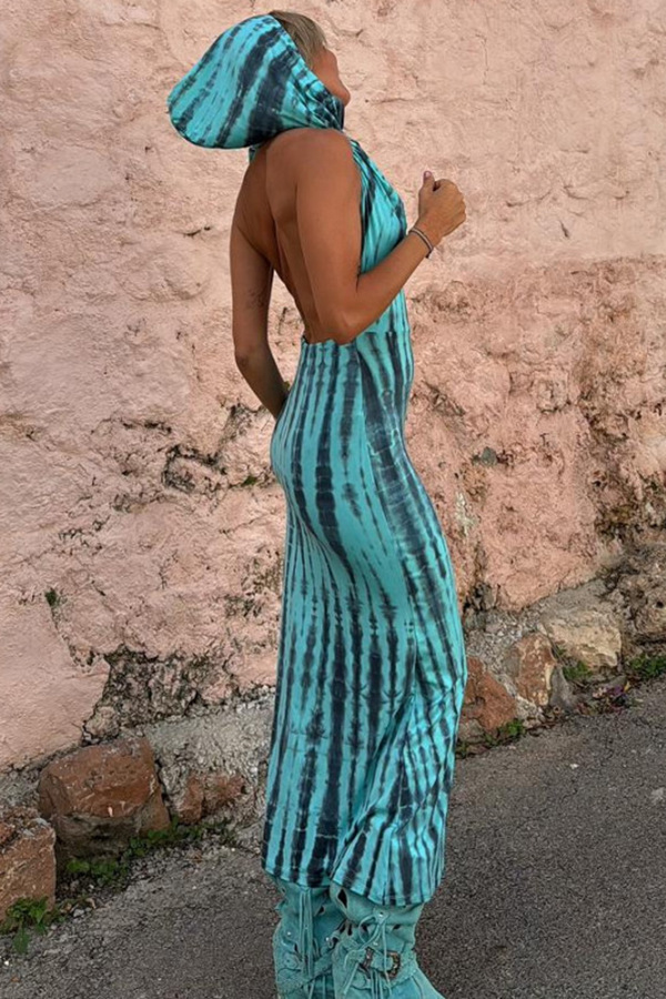Hooded Backless Print Ethnic Style Dress